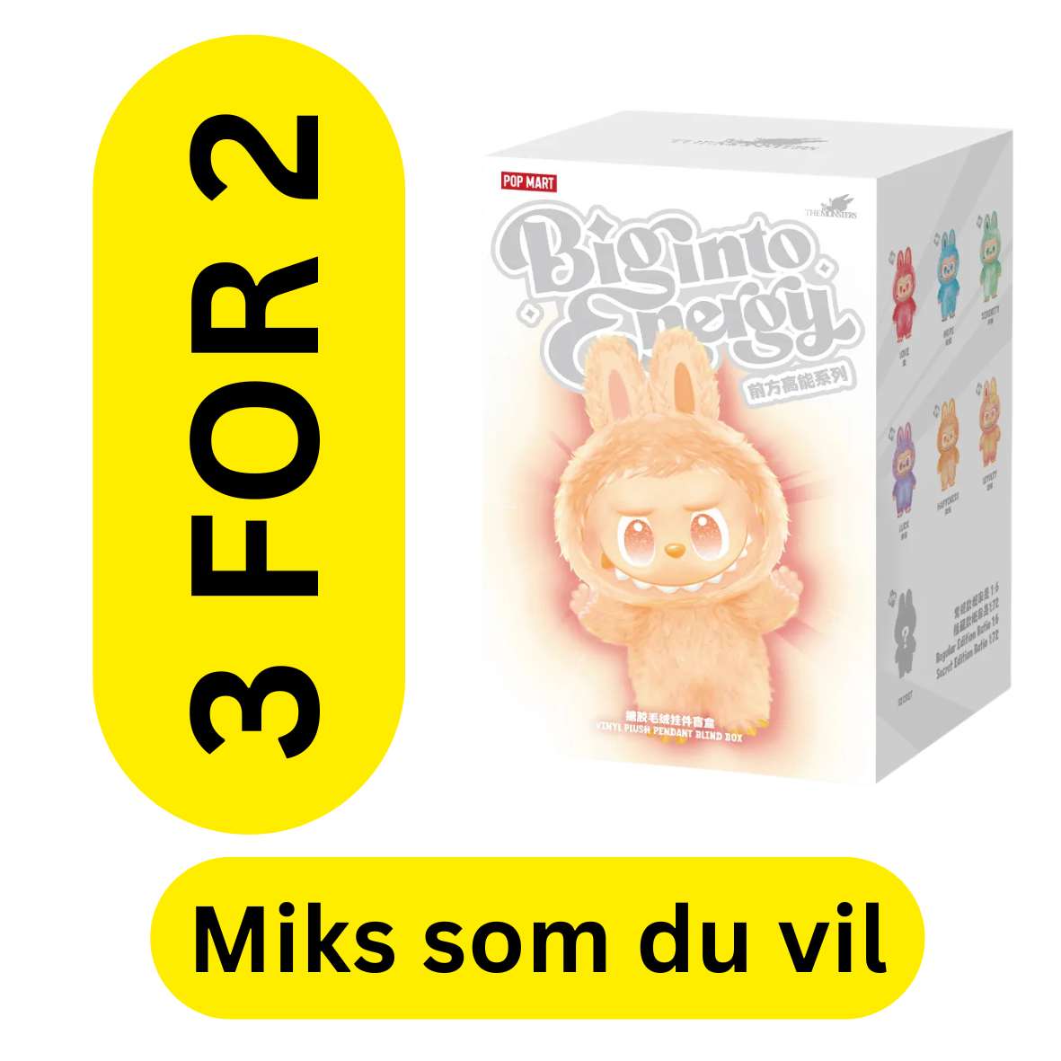 Labubu- 3 for 2 -THE MONSTERS: Big into Energy Series.   3 for 2 – Velg fritt! Kjøp tre mystery boxes fra Have a Seat, Exciting Macaron eller Big Into...