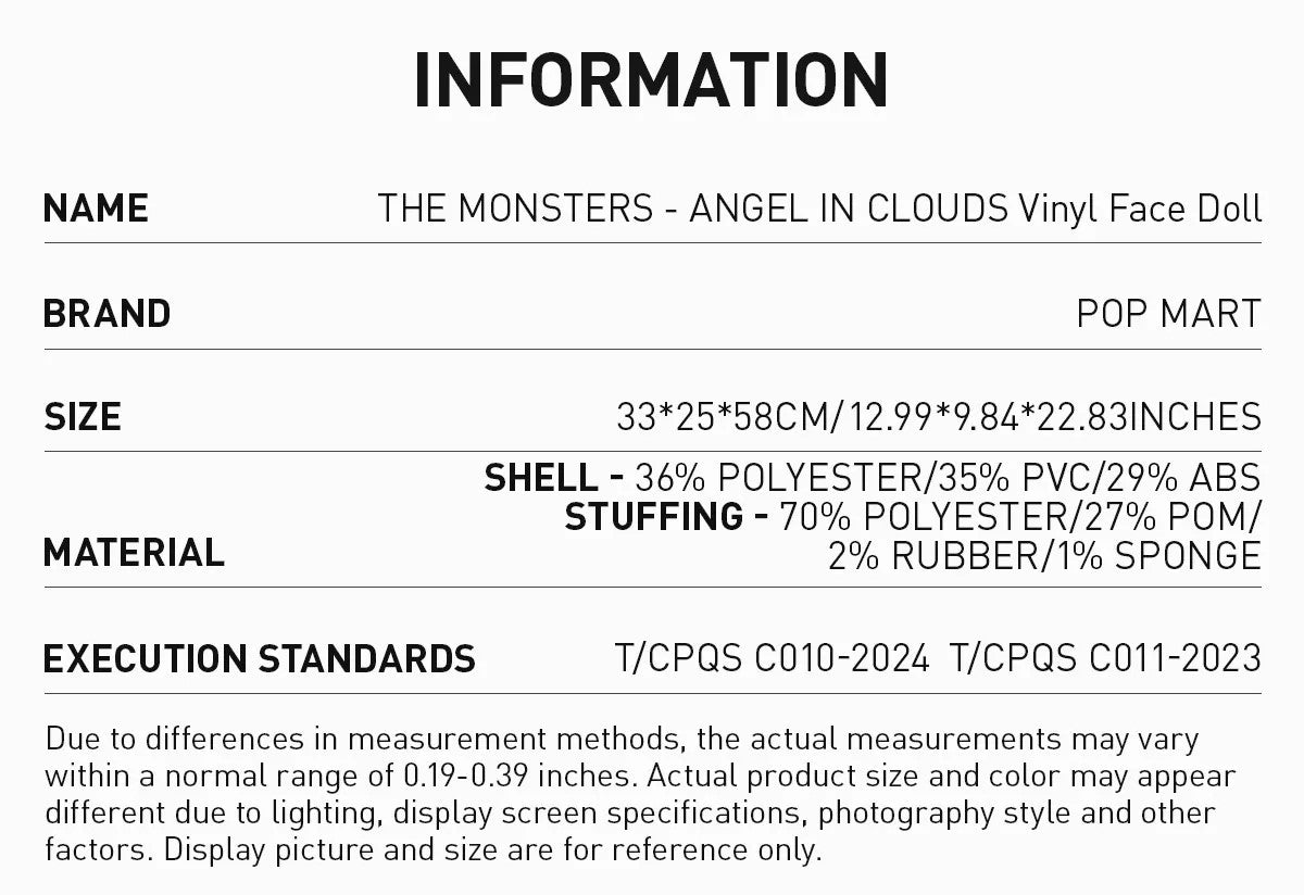 POP MART Original - THE-MONSTERS - ANGEL IN CLOUDS Vinyl Face Doll 58 cm