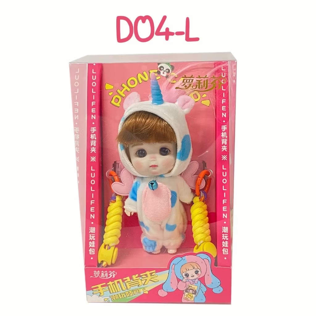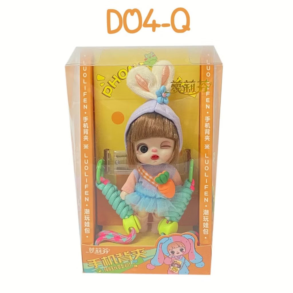 Gjør mobilen til et lekent og stilfullt tilbehør! Denne unike mobilbæreselen kombinerer praktisk funksjon og sjarmerende design – perfekt for barn som elsker dukker og mote. Fest mobilen trygt med medfølgende clips, og bær den som en liten veske!